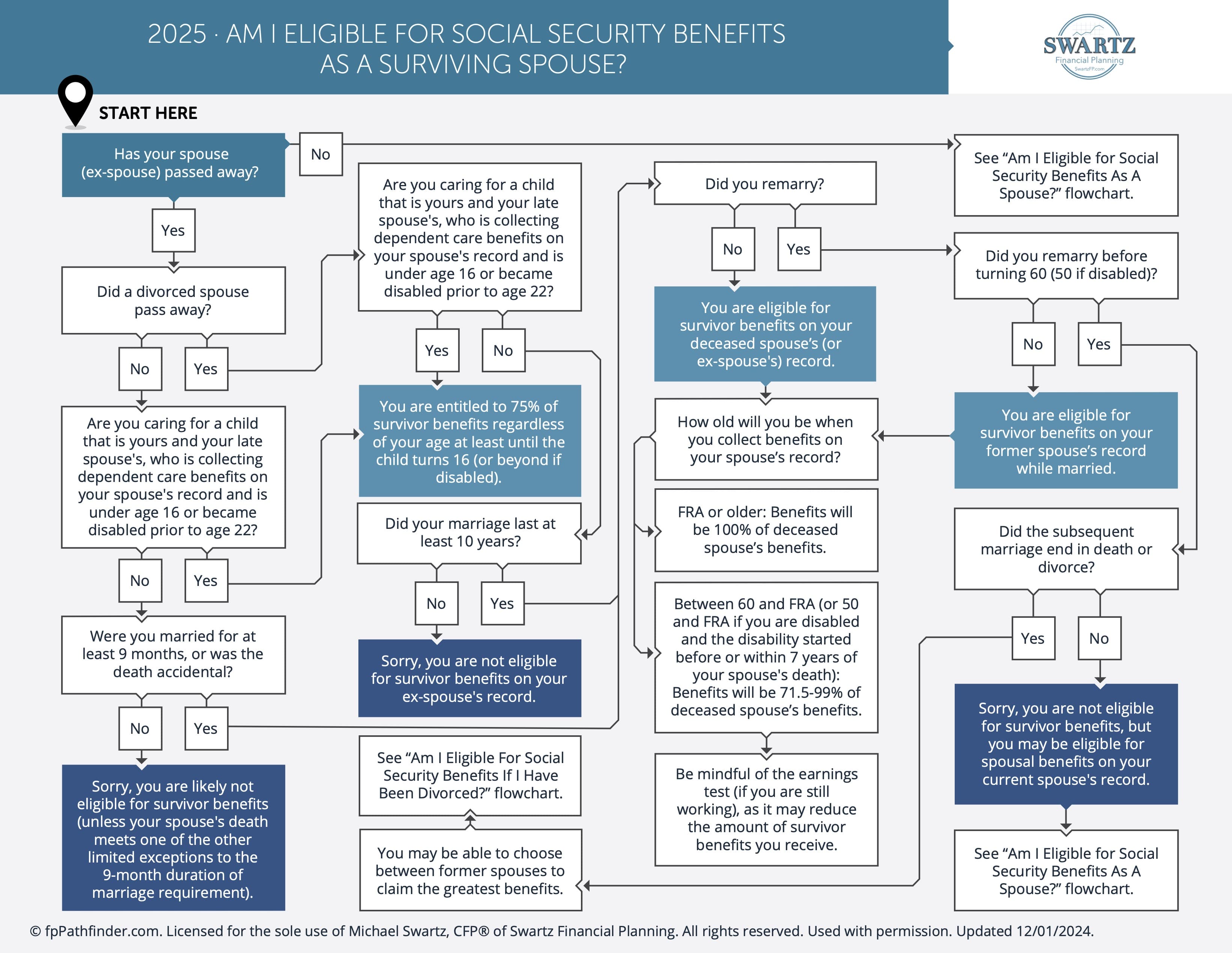 Am I Eligible For Social Security Benefits As A Surviving Spouse? This flowchart will guide you through the factors determining eligibility.