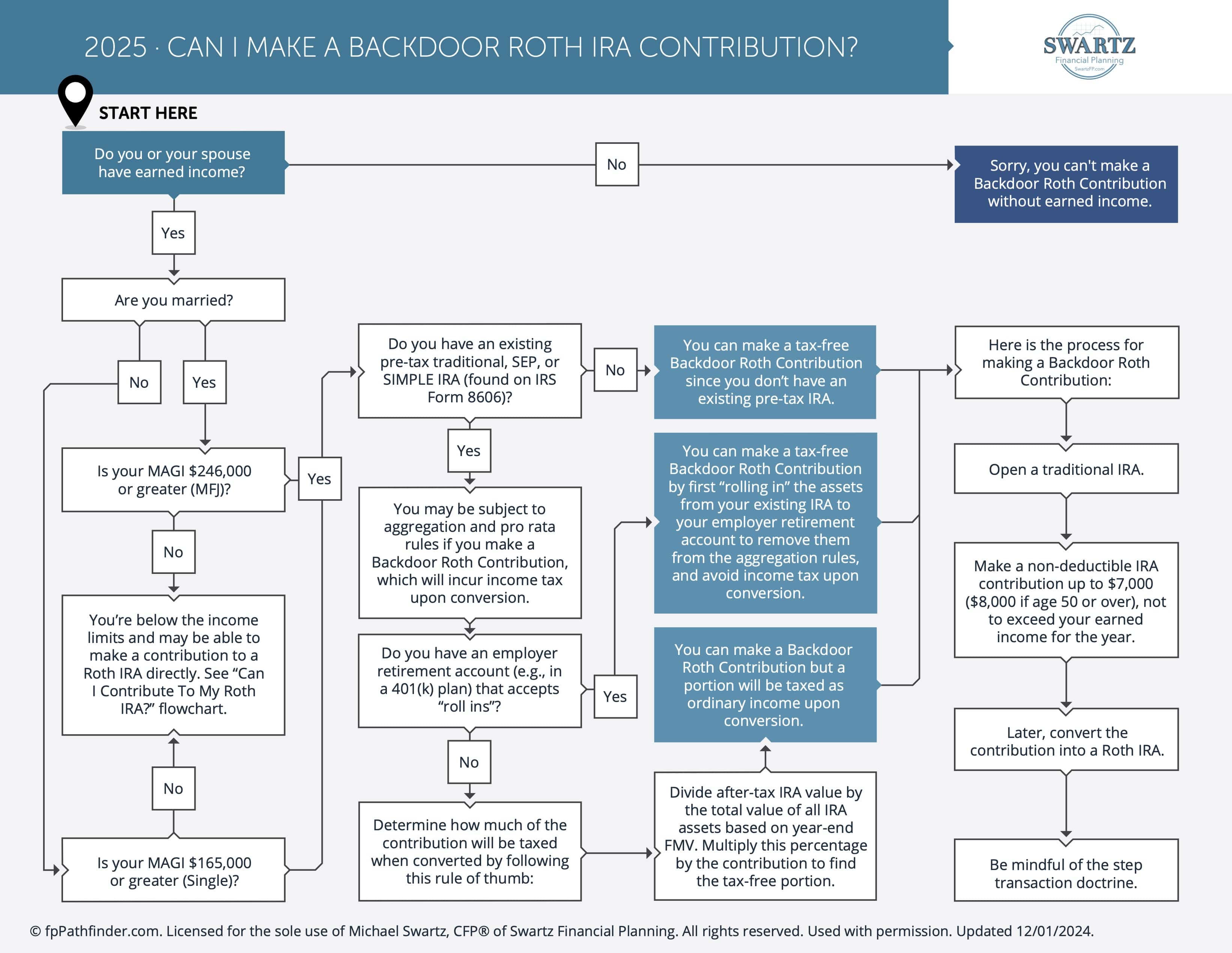 Can I Do A Backdoor Roth IRA Contribution? This flowchart will guide you through the eligibility factors.