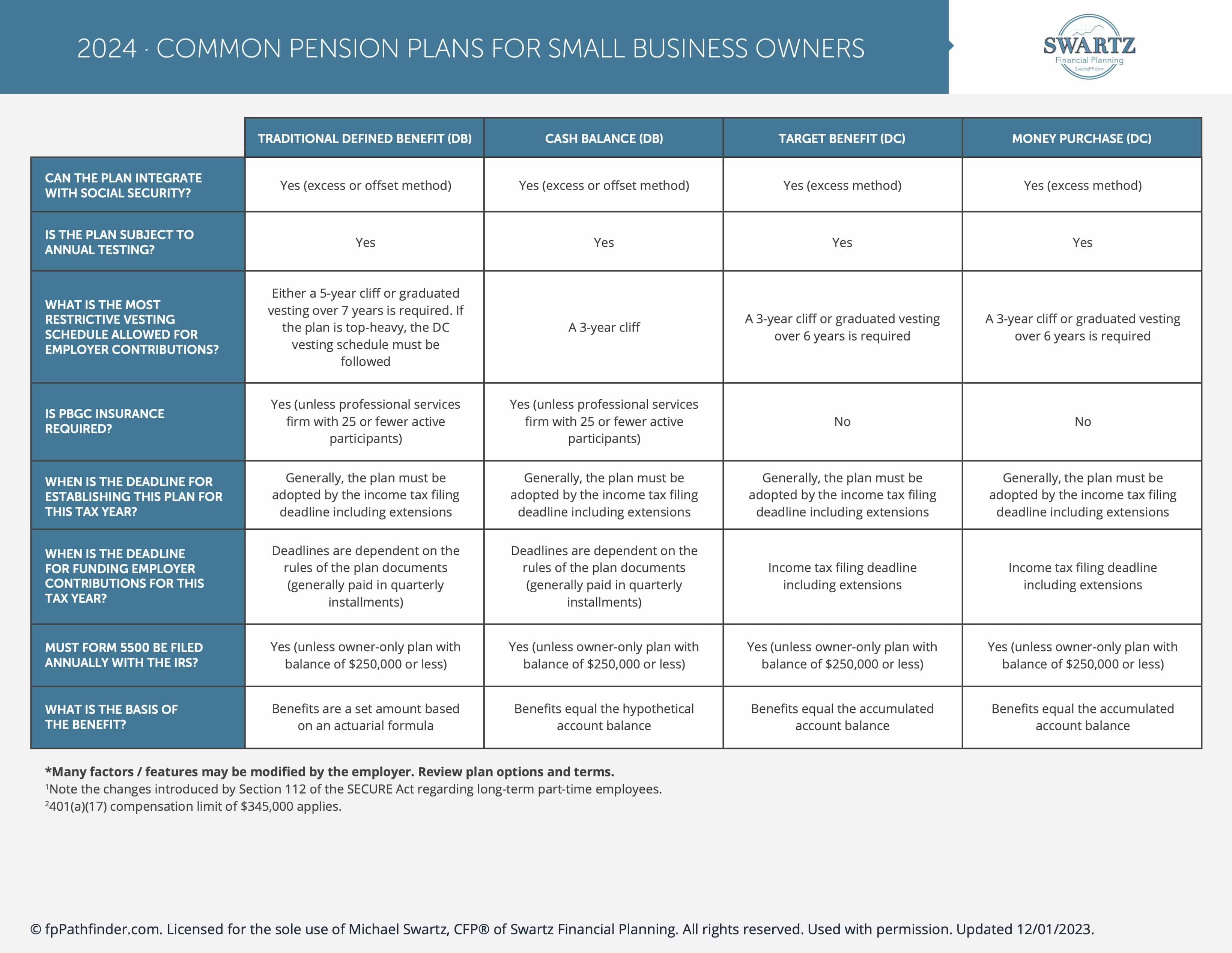 Common Pension Plans For Small Business Owners. This chart will walk you through discovering common plans.