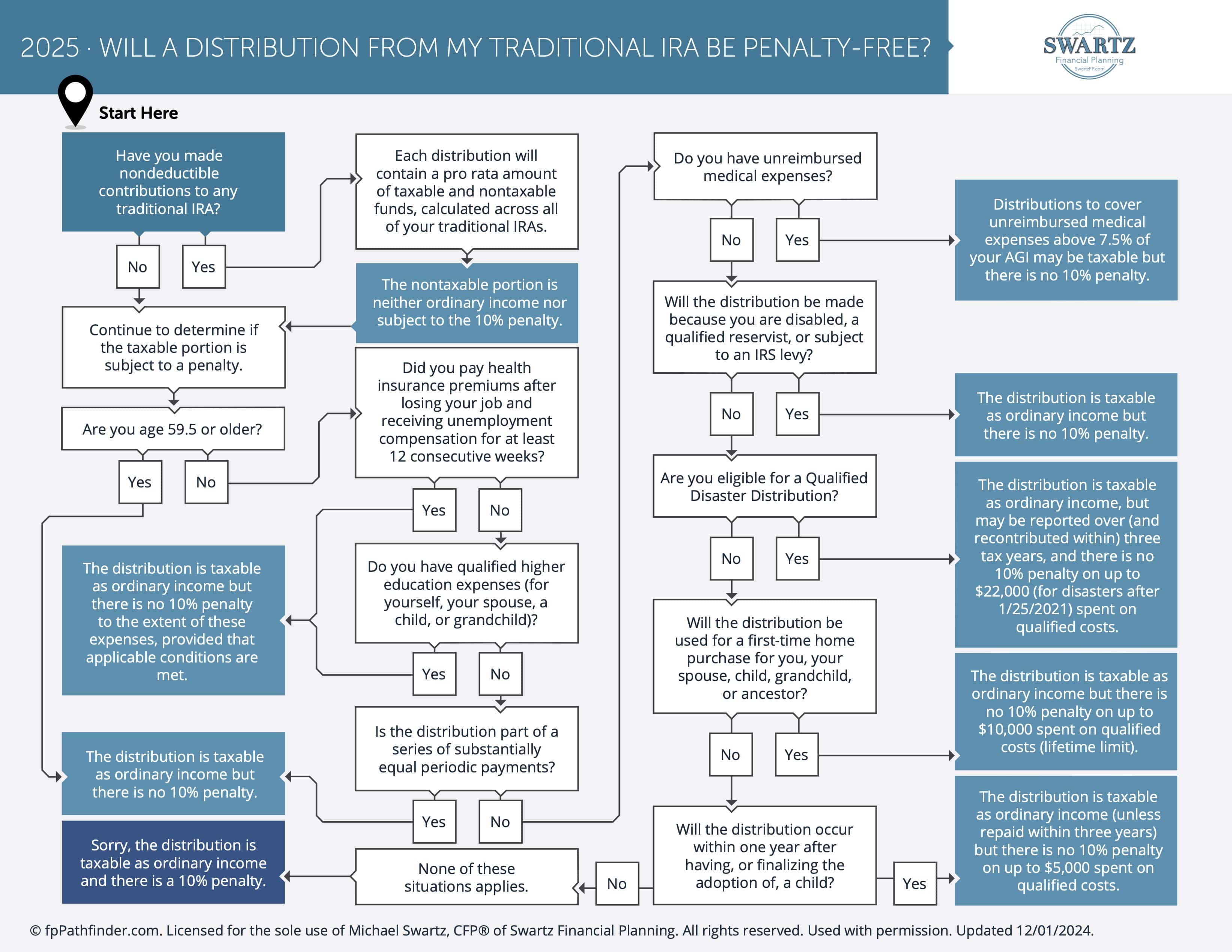 Will A Distribution From My Traditional IRA Be Penalty Free? This flowchart will walk you through discovering the answer.